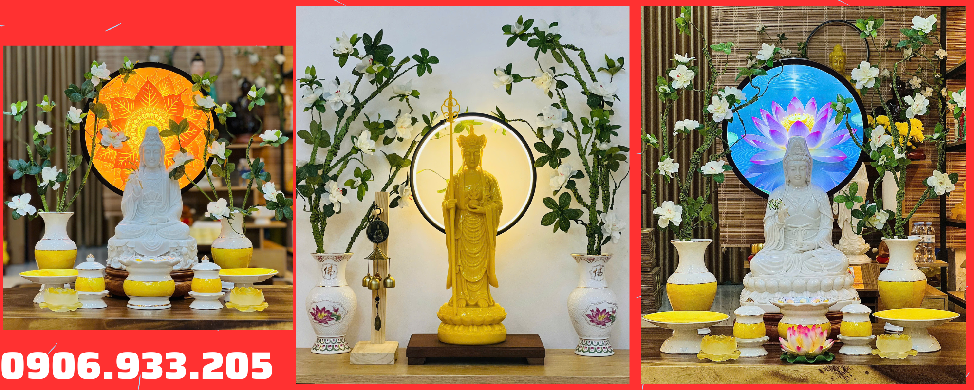 Tượng Phật Quán Âm Bồ Tát thờ tại gia 50cm chất liệu đá đúc đặc nguyên khối, Phúc Lộc Thọ