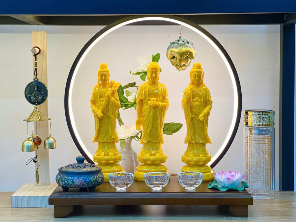 Chín Phẩm Hoa Sen bên nước Cực Lạc, tượng Phật Phúc Lộc Thọ